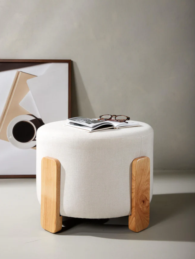 Puff Lineal con Patas de Madera – Diseño Minimalista y Acabado Premium
