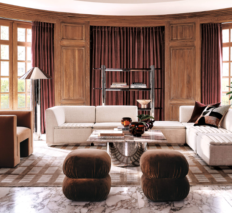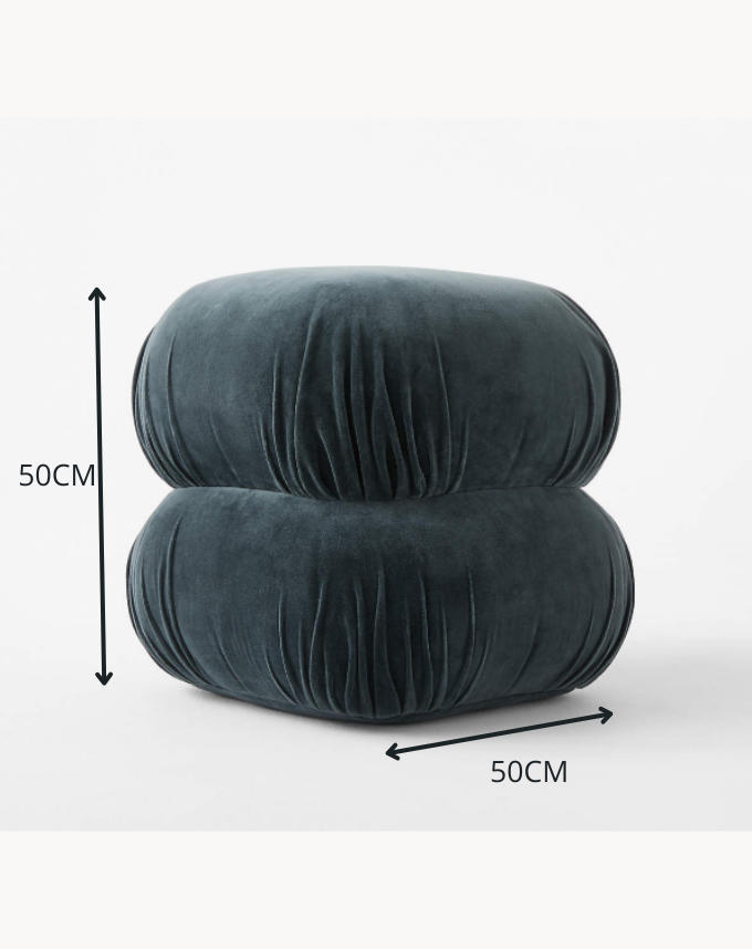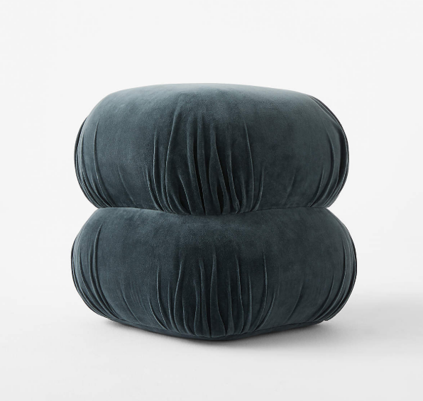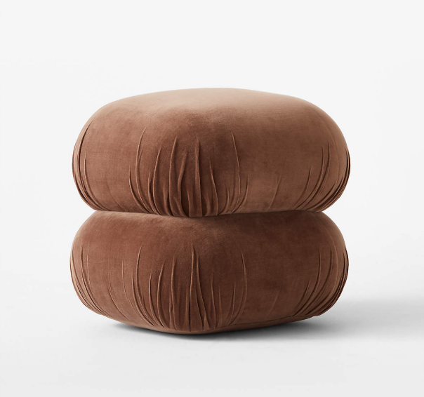 Con un lujoso detalle fruncido, este puf de terciopelo color visón le da un toque sofisticado a cualquier habitación. Exclusivo de CB2.